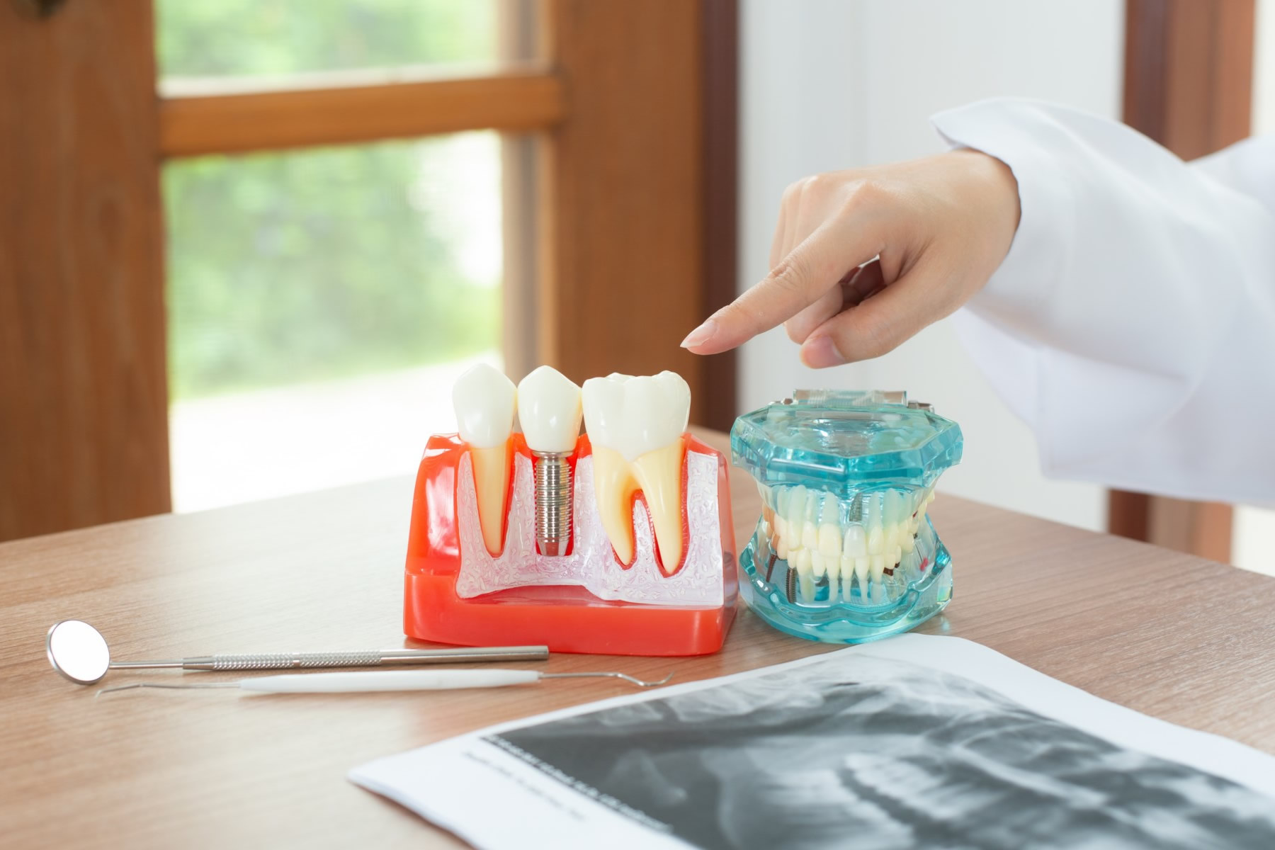 Zahnimplantate dienen als künstliche Zahnwurzeln, die in den Kieferknochen inseriert werden. Nachdem das Implantat eingeheilt ist, wird eine Krone hergestellt und eingesetzt. Keine andere Form des Zahnersatzes kommt dem natürlichen Zahn so nahe wie das Zahnimplantat.